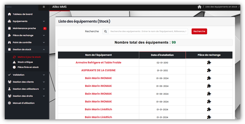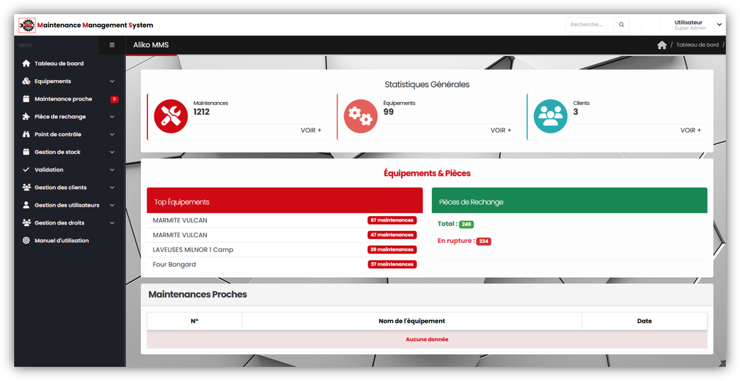 ALIKO MMS est une application web innovante conçue pour optimiser la gestion de la maintenance. Elle permet le suivi en temps réel des équipements, la planification des interventions, le contrôle des performances techniques, et la centralisation des données pour une prise de décision rapide et fiable.